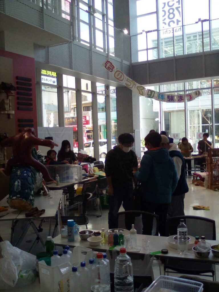 今日はまちぐみ展最終日、ものづくり体験祭りです